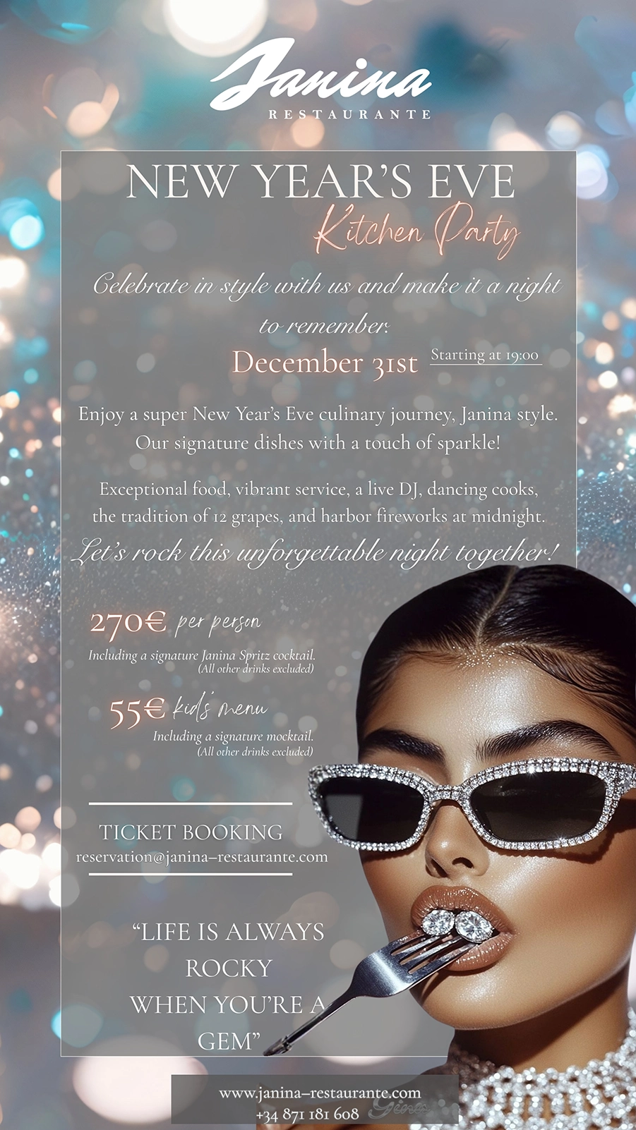 The experience of international cuisine merges with the vibrancy of our island. Each dish tells a fascinating story through cosmopolitan flair. Our intimate boutique restaurant exudes a unique vibe. At Janina Restaurante, Mediterranean influences merge with South American and Asian finesse — where fine dining meets lifestyle and haute cuisine meets high fashion. From the moment you step inside, you feel the glam of Janina Restaurante. The 180-million-year-old amethyst shaped like a butterfly is the restaurant’s signature feature. As an Instagram point, it contributes — along with 30 well-placed rock crystals — to enhancing the atmosphere with positive energy. The bar, made of premium Greek alabaster stone, and the open show kitchen are real eye-catchers, where freshly selected, high-quality ingredients are transformed daily into haute cuisine creations. Whether you’re enjoying a relaxed lunch, a stylish dinner, a sundowner with a sea view, or one of the cool events that regularly take place—Janina Restaurante is one of the most exciting hotspots in Mallorca!